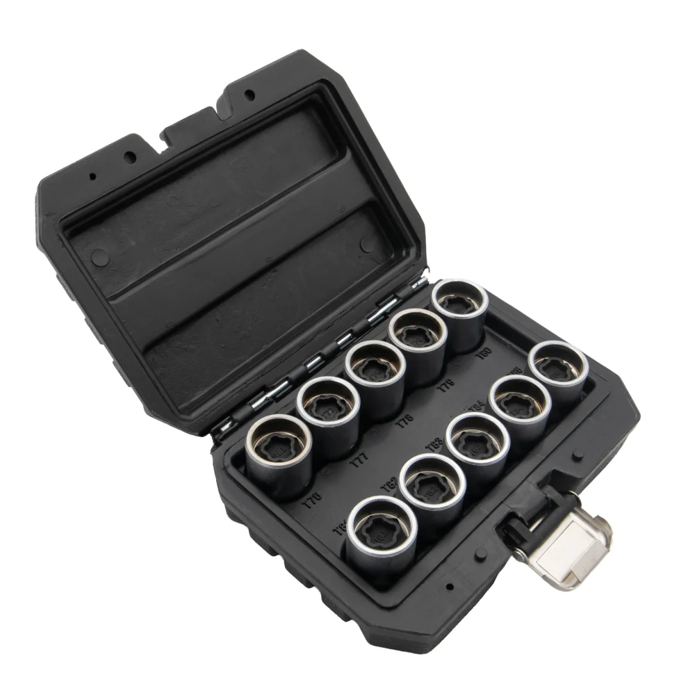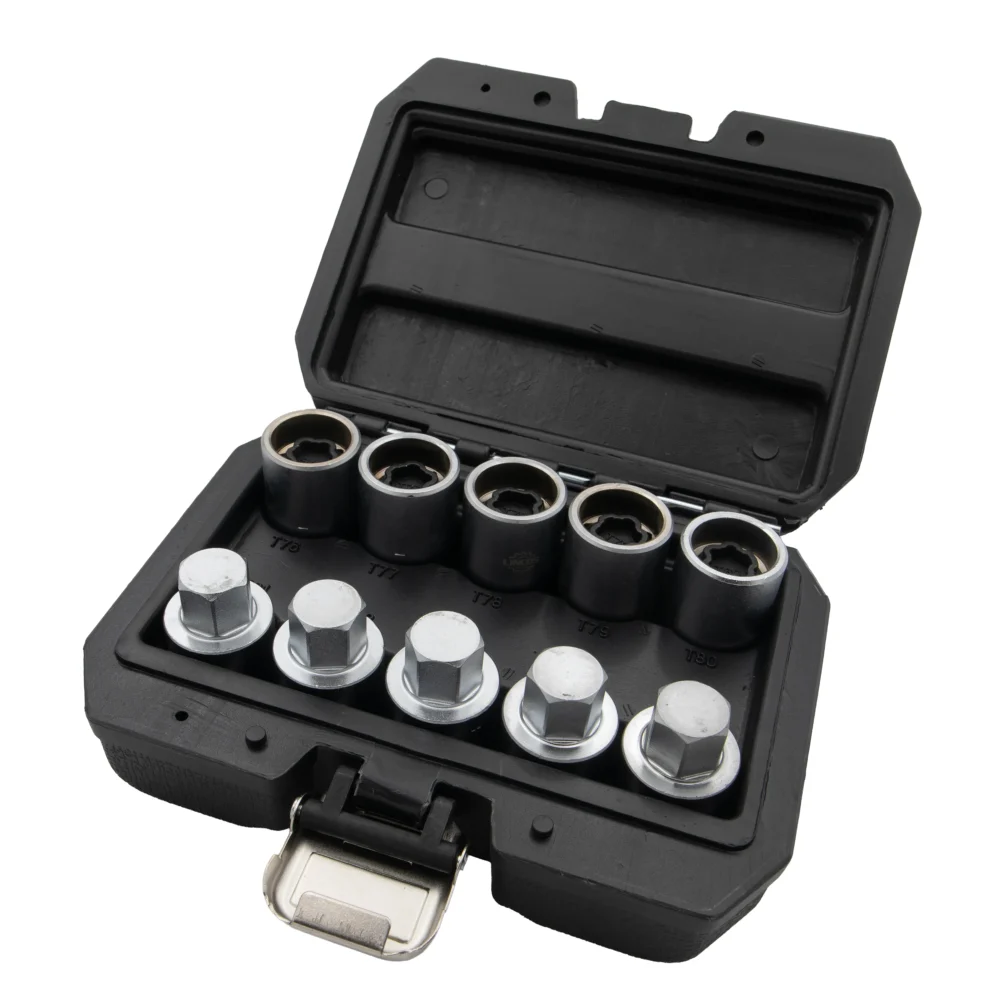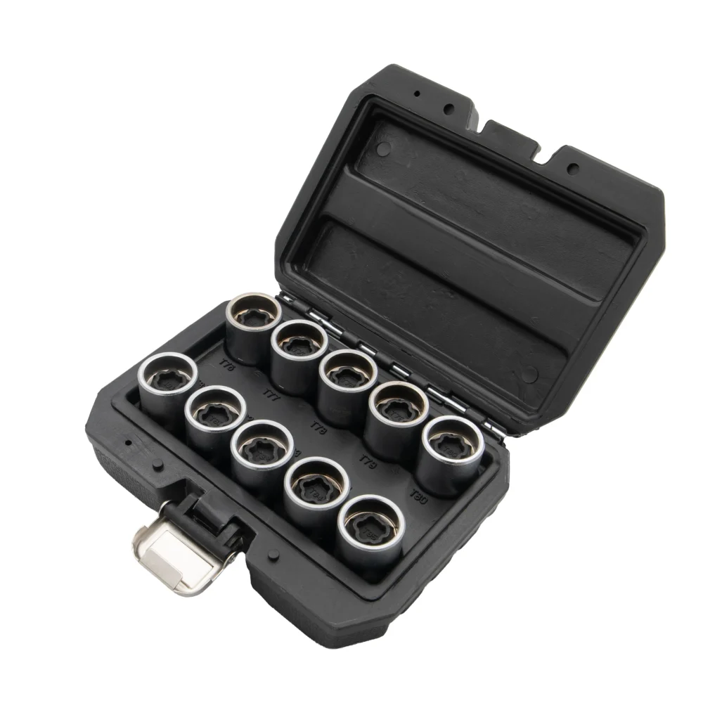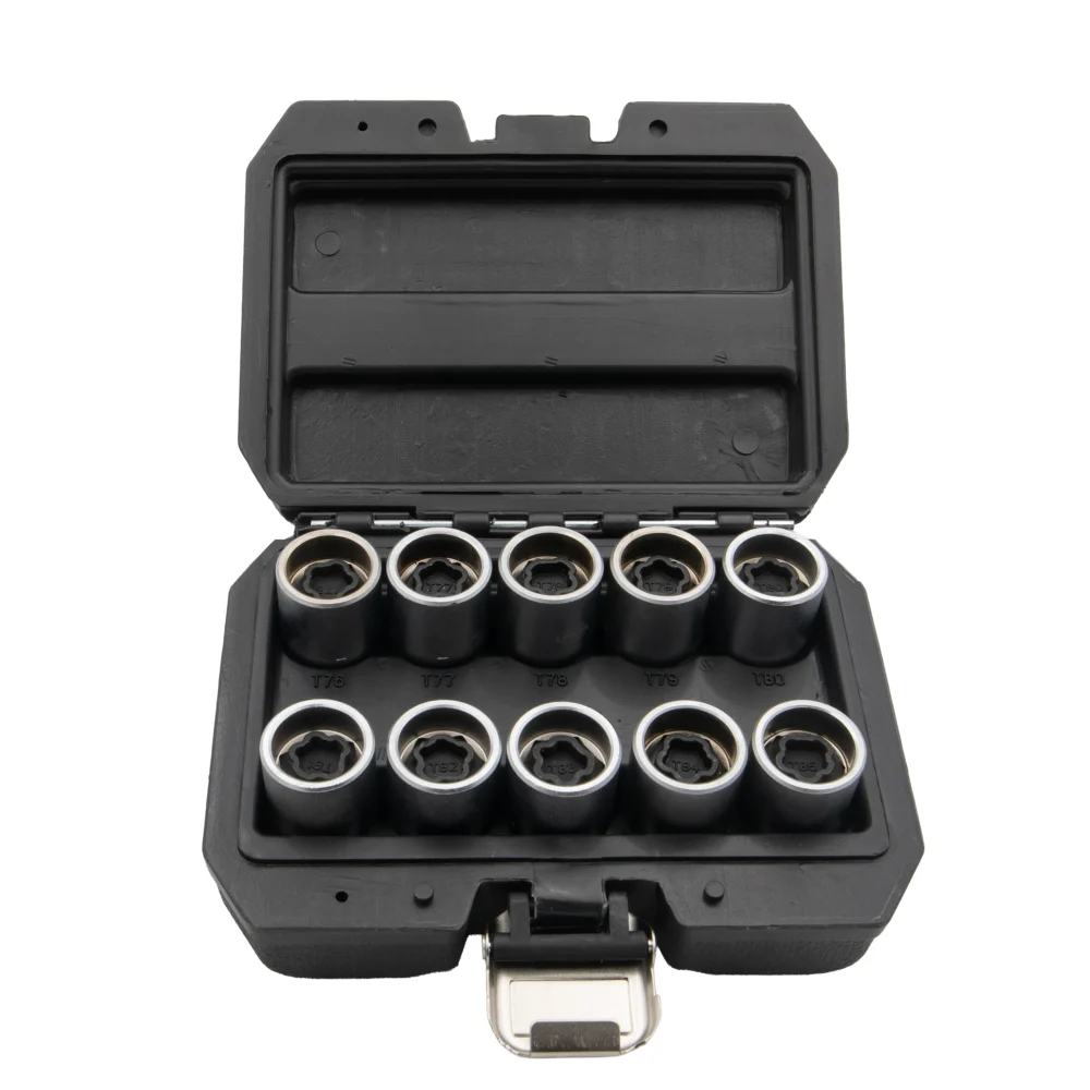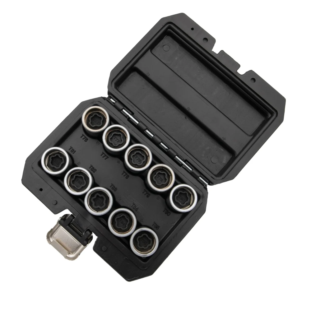 - Ovaj set od 10kom za Teslin set nastavnih ključeva za točkove je posebno dizajniran za servisiranje Teslinih vijaka za točkove, nudeći precizno prianjanje i izdržljivost. Sadrži veličine nastavnih ključeva od T76 do T85, pokrivajući širok spektar Teslinih modela i pričvršćivača za točkove.
