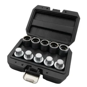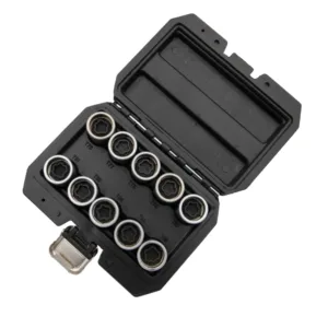- Svaki nastavak ima poseban unutrašnji profil koji odgovara jedinstvenim glavama Teslinih vijaka za točkove, osiguravajući bezbedno uklanjanje ili ugradnju bez oštećenja. Set je smešten u robusnu plastičnu kutiju sa metalnom kopčom, što omogućava bezbedno skladištenje i lako prenošenje.