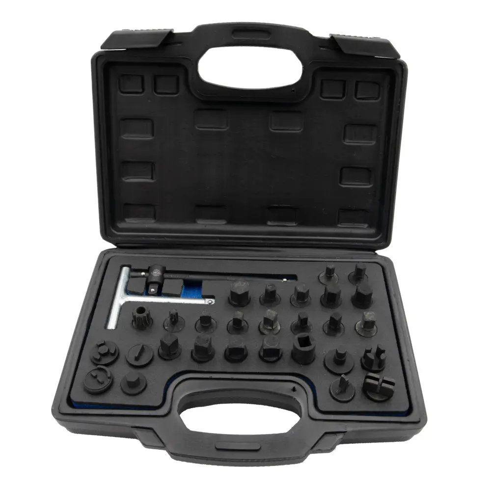 - Ovaj svestrani set otvora za ispuštanje ulja od 30 delova dizajniran je da odgovara skoro svim uobičajenim markama automobila, uključujući Audi, Bmw, Citroen, Fiat, Ford, Hondu, Mazdu, Mercedes-Benz, Nissan, Peugeot, Renault, Toyotu i druge.
