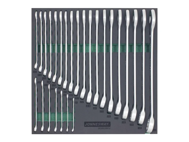 - Set dugih kombinovanih ključeva, 26 kom. u umetku od meke EVA pene. Savršena oprema za kolica ili ormare za alat.